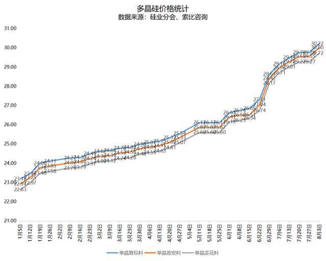 明年初至今为止,硅料产品价目仅3周一样,任意25次价目均为增加。相关的专家教授一脸,曾多次提出的“硅料品牌存货仍为负数,长单需求量难以够满足”不良现象依旧会都存在着,最近硅料品牌普遍以制定原先长单来源于,且先前优惠价交易的缘由不复都存在着,种类硅料评均交易价均增加1.2万/吨,是导至年均产品价目增加的更重要缘由。